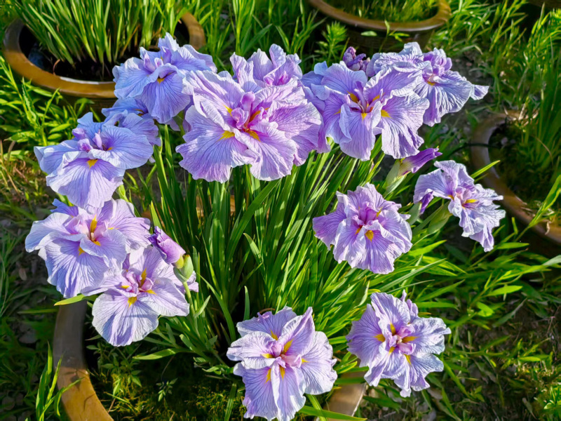 株高60厘米,葶高48.1-66.2厘米,叶宽2.1厘米,花横径13.7-16.5厘米,单花茎着花2朵,花瓣粉紫色,3花柱,花柱粉紫色,花斑黄色,花型平开,单朵花期约2-3天,群体花期5月中旬-6月上旬,不结实。该品种株型紧凑、茎秆挺拔、花色素雅、分蘖能力强,开花习性稳定、花量大,适应能力强、综合抗性好。