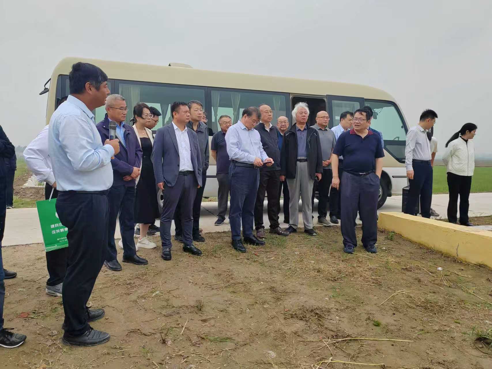 与会人员现场考察了庆安镇杜巷村黄淮地区粮食作物生产技术集成创新高地,基地核心区连片种植了1000亩我所选育的优质高产多抗杂交籼稻新品种“扬籼优911”,并集成多所高校杂交籼稻毯苗机插绿色超高产栽培、杂交籼稻毯苗机插高产优质协同栽培、水稻高产优质均衡群体构建等6项栽培技术。