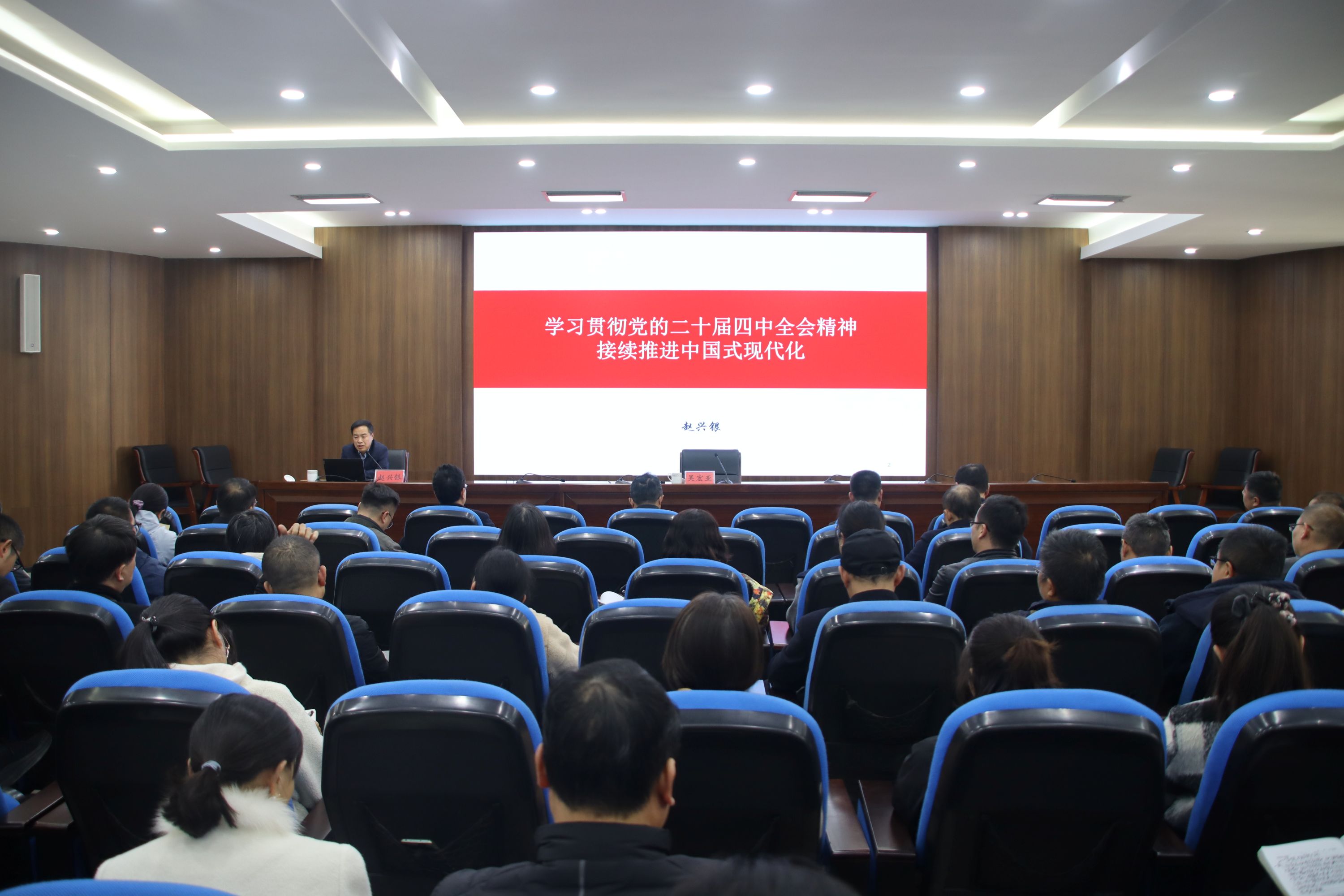 为深入学习贯彻党的二十届四中全会精神,切实把思想和行动统一到党中央决策部署上来,11月26日,我所举办党的二十届四中全会精神专题辅导讲座,邀请扬州市委党校副校长赵兴银教授为全所作全会精神宣讲,党委书记吴宏亚主持讲座,全体党员干部和科技人员参加。