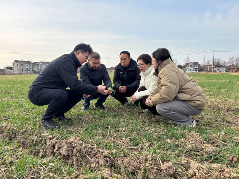 陈骏副市长通过田间实地查看小麦苗情,详细了解基地示范田块种植基本情况及我所扬麦品种、增效肥料及抗逆叶面肥等多途丰产举措。王守红副书记和资环室副主任徐荣现场介绍了基地示范适宜本地区种植的扬麦39、苏麦288等优质、稳产、抗倒、抗病的小麦新品种和稻麦周年带卫星导航的“九合一”秸秆全量还田机械,实施小麦耕播新型机械施肥-双耙深旋耕埋草-镇压-播种(条播)-盖籽-镇压-开沟一体化耕种方式。陈市长充分肯定了我所围绕农业新品种、新技术、新模式等方面开展的科研示范工作,强调要因时因田采取科学有效措施,应对不利天气,全力促进苗情转化升级、壮苗越冬,协同夯实夏熟丰收基础。