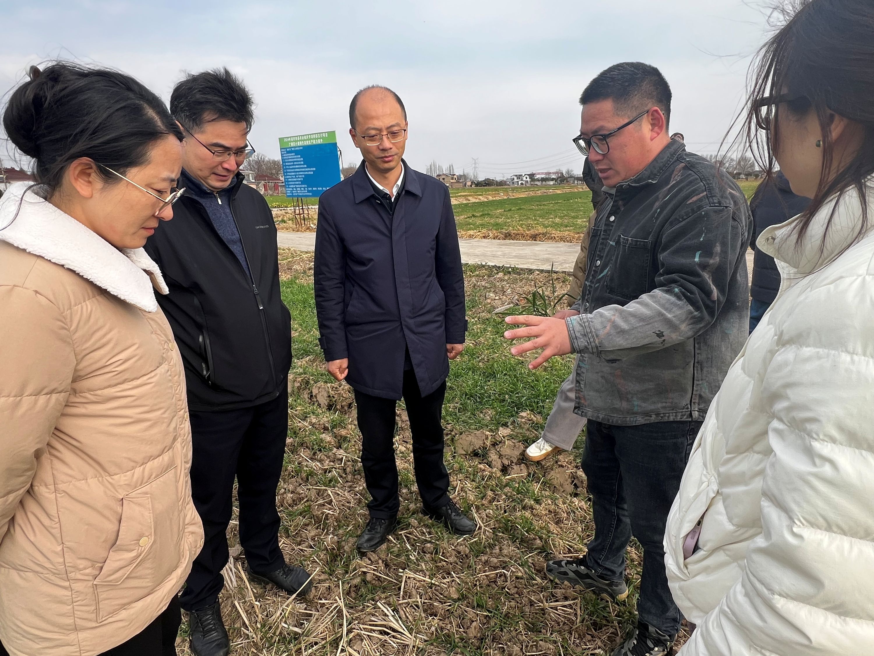 切实抓好冬季小麦田间管理,12月31日上午,扬州市副市长陈骏以“四不两直”方式莅临我所位于广陵区头桥镇庆丰村的亚夫科技服务项目基地调研冬季小麦田间管理工作。市政府副秘书长梅新伟,市农业农村局总农艺师丁涛、副局长李文西,广陵区农业农村局等领导陪同调研。