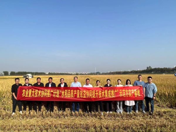 10月26-30日我所科技服务中心赵步洪研究员参加了扬州大学张洪程院士团队和苏州市农科院主持的国家研发重点计划、农业重大技术协同推广计划等多个水稻研发项目的测产验收。水稻绿色丰产优质高效无人化栽培技术展示了良好的应用前景,无人机插、无人飞播和无人旱直播技术发挥了各自优势。其中在泗洪超高产示范方,通过实收测产,杂交粳稻沭优52-126,每亩突破1000公斤大关,实收亩产1074.89公斤。这充分表明科技在推动水稻可持续高质量发展中发挥关键作用。